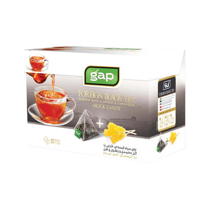 ویژگیهای چای سیاه کیسهای گپ با گل محمدی، زعفران و هل با نبات